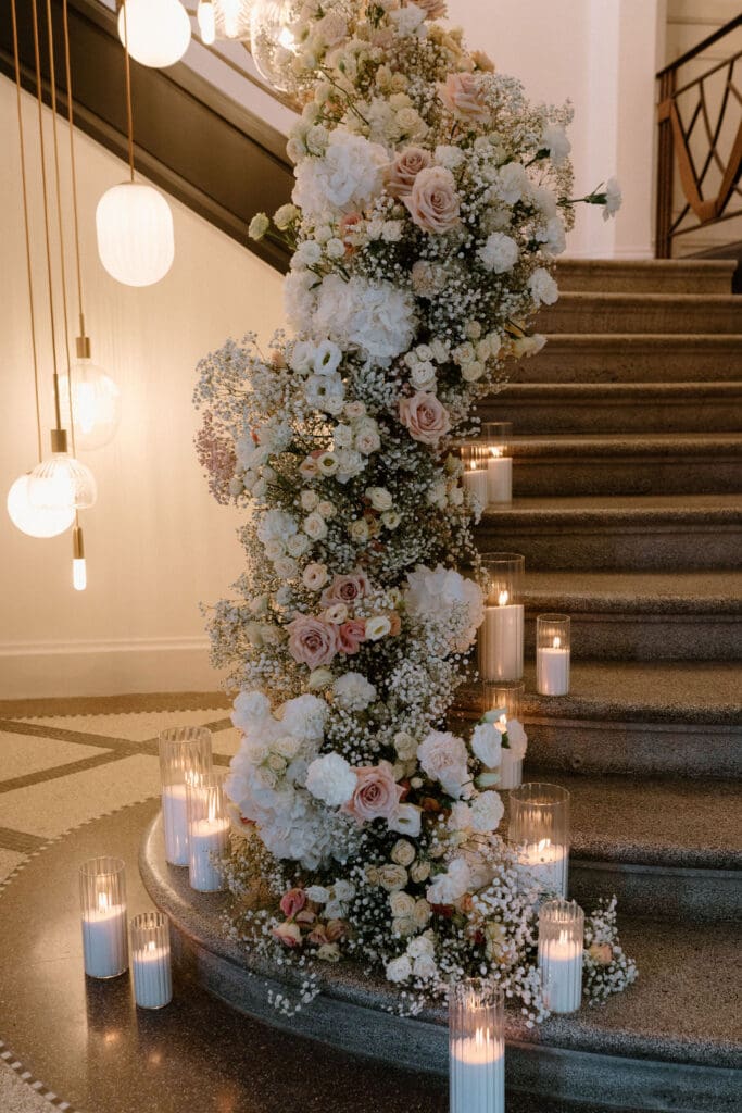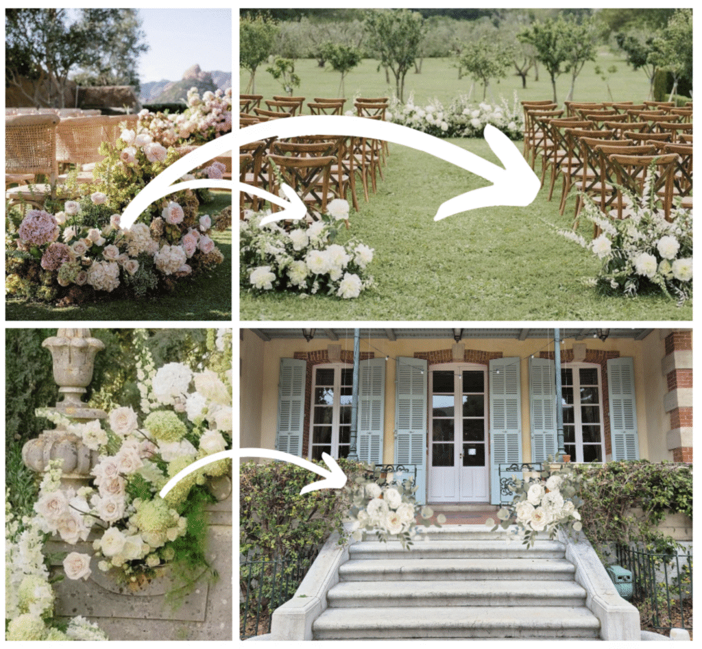 Une scénographie florale de mariage réussie ne se regarde pas, elle se vit. Elle guide les déplacements, structure les regards, crée des respirations, valorise les perspectives et transforme la perception du lieu.
