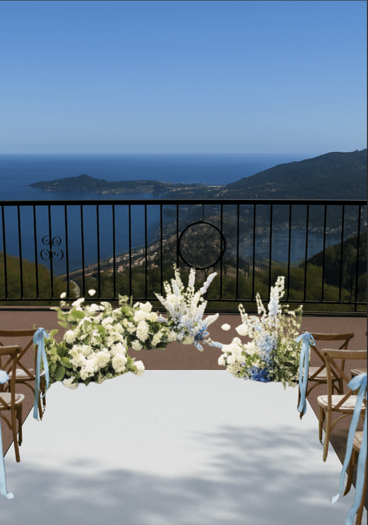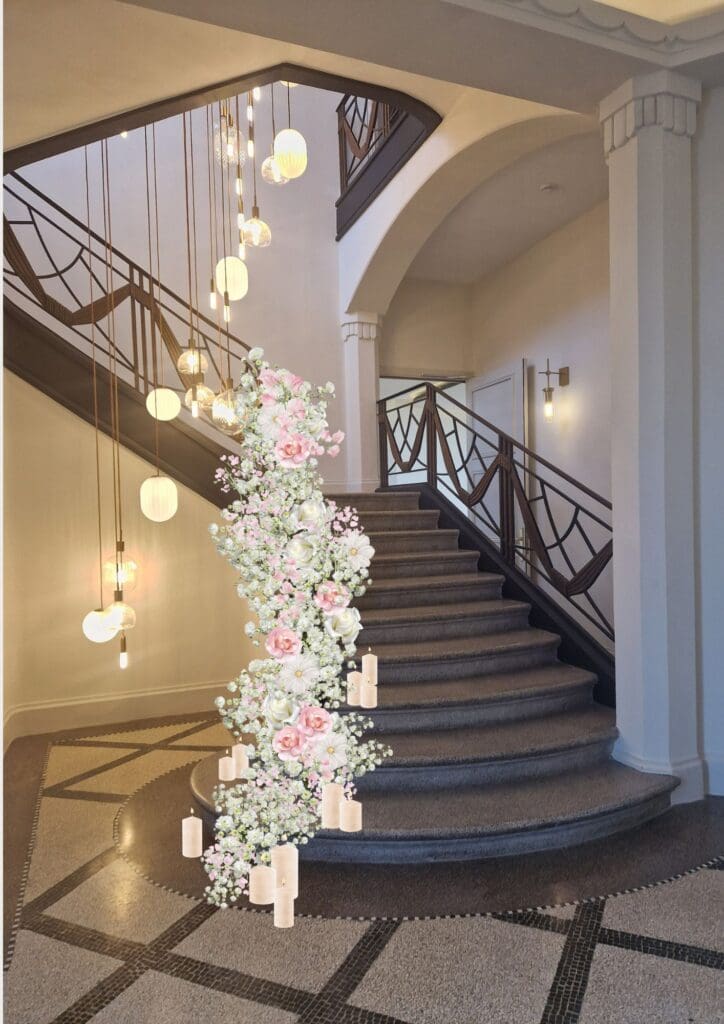 Il ne s’agit pas d’un simple dessin technique, mais d’une interprétation artistique du projet. Une vision. Une intention graphique. Un premier langage visuel. C’est ici que la scénographie florale de mariage commence réellement à prendre forme.